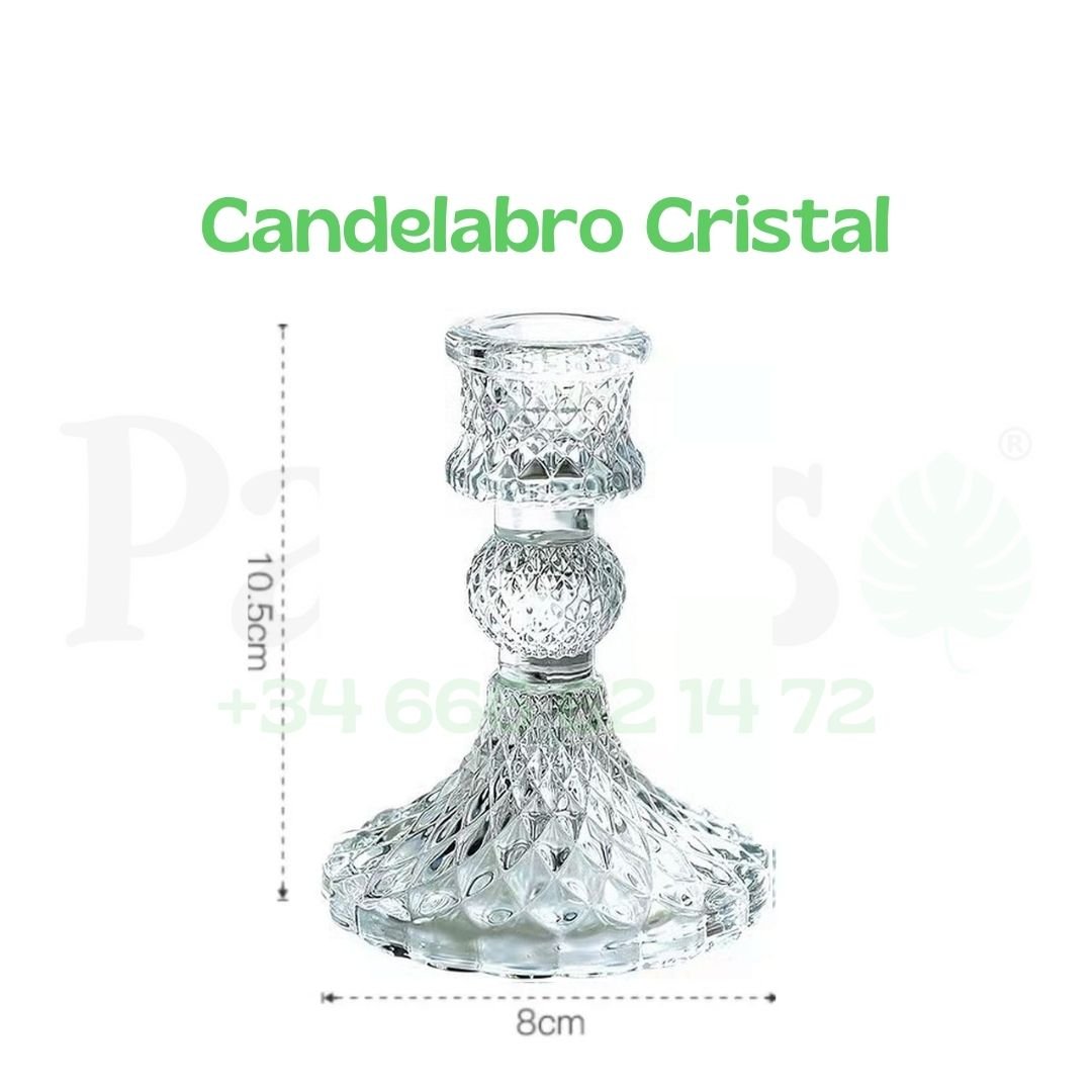 Candelabro Cristal, medidas 10,5cm de alto y 8cm de diámetro en su base. no incluye accesorios